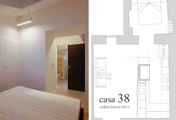 Nel centro storico di Trieste, una soffitta abbandonata di meno di 40mq che ci è stato richiesto di recuperare per un investimento tarato sulla rivendibilità trasformando lo spazio in un alloggio di qualità. Abbiamo progettato il recupero di questa soffitta nel dettaglio utilizzando - con il disegno e la costruzione su misura degli arredi - ogni centimetro a disposizione. Il progetto si basa sulla ricerca della qualità del materiale da rivestimento e sul contrasto tra opacità e lucentezza delle superfici e in generale sulla pulizia del disegno, vera ossatura del progetto.