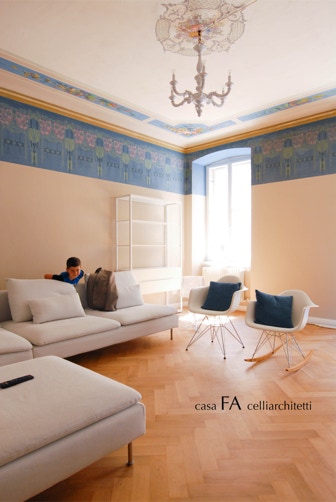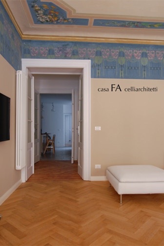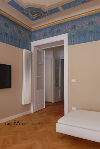 La luce, il fine restauro dei pavimenti in rovere e dei decori, la scelta dei nuovi materiali, fanno di questo appartamento un piccolo gioiello liberty.