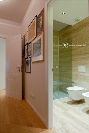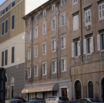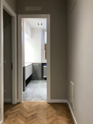 Questo grande appartamento di circa 200 mq frutto del frazionamento di un piano da 400 mq era privo di impiantistica ma presentava due valori aggiunti: un pavimento a quadroni in rovere finemente lavorato e una vista mozzafiato sul golfo di Trieste godibile da una “altana” sopra ai tetti. Il nostro progetto ha rovesciato la distribuzione originaria dell’alloggio, che aveva spazi angusti e bui sul lato mare e spazi aperti sul retro dell’edificio. Il soggiorno e la cucina, spazialmente ma non fisicamente separati - si affacciano ora a ovest con 4 finestre sul golfo e l’accesso all’altana, strutturalmente consolidata. Il bellissimo pavimento - integrato con parti nuove e neutre - è stato smontato e riposizionato dopo averlo restaurato.