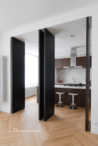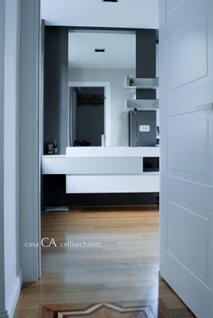 Abbiamo trasformato questo anonimo appartamento degli anni ’30 per un caro amico. Il progetto prevedeva la flessibilità degli spazi attraverso la realizzazione di pareti “contenitore” realizzate in legno su misura e portelloni mobili. L’impronta è quella di un progetto sobrio, classico contemporaneo.