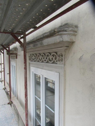 Costruito nel 1878, l’edificio, di gusto eclettico, versava in pessimo stato di conservazione e parte dell’apparato decorativo era gravemente danneggiato.