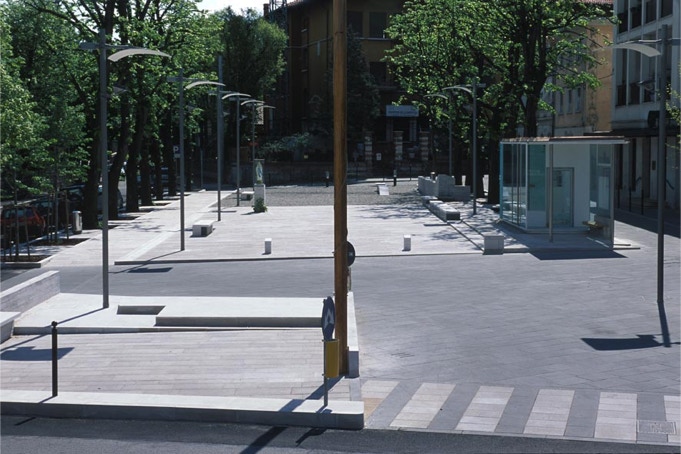 Il delicato equilibrio originale, organizzato principalmente attorno ad un tabernacolo contenente un’icona della Vergine Maria, è stato nel tempo stravolto dalle esigenze viabilistiche. La necessità di riordinare la gerarchia degli ambiti è andata di pari passo con l’esigenza di ricostituire le relazioni fra spazio pubblico e città, ricercando quella natura strutturale di luogo congruente ad un carattere urbano complessivo – urbanistico, sociale, storico, formale. L’organizzazione spaziale è geometricamente semplice e tende a riaffermare - attraverso l’autonomia del disegno e la scelta di creare un “tappeto” in pietra naturale differenziato sia cromaticamente che superficialmente - la caratteristica di urbanità e centralità ricercata nel progetto.
